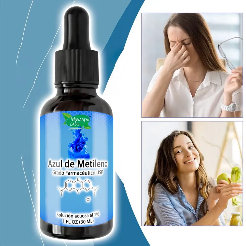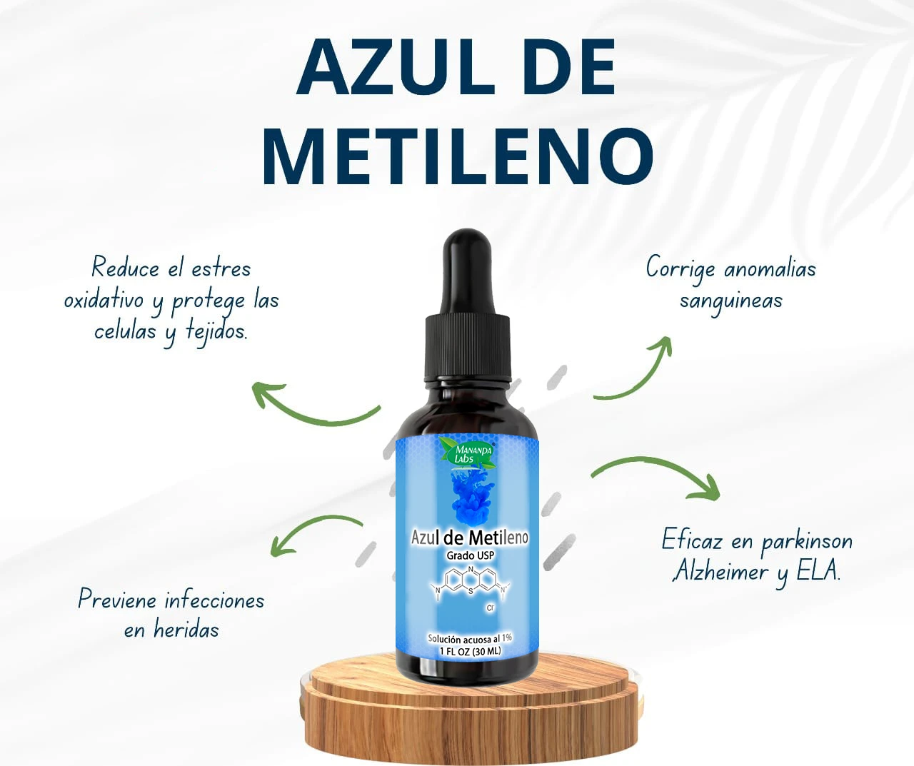 El Azul De Metileno 1% Solución Acuosa Grado Farmacéutico 30ml de la marca Mananpa Labs es un producto de alta calidad y confiabilidad. Esta solución acuosa, con un contenido de azul de metileno del 1%, es perfecta para uso farmacéutico.